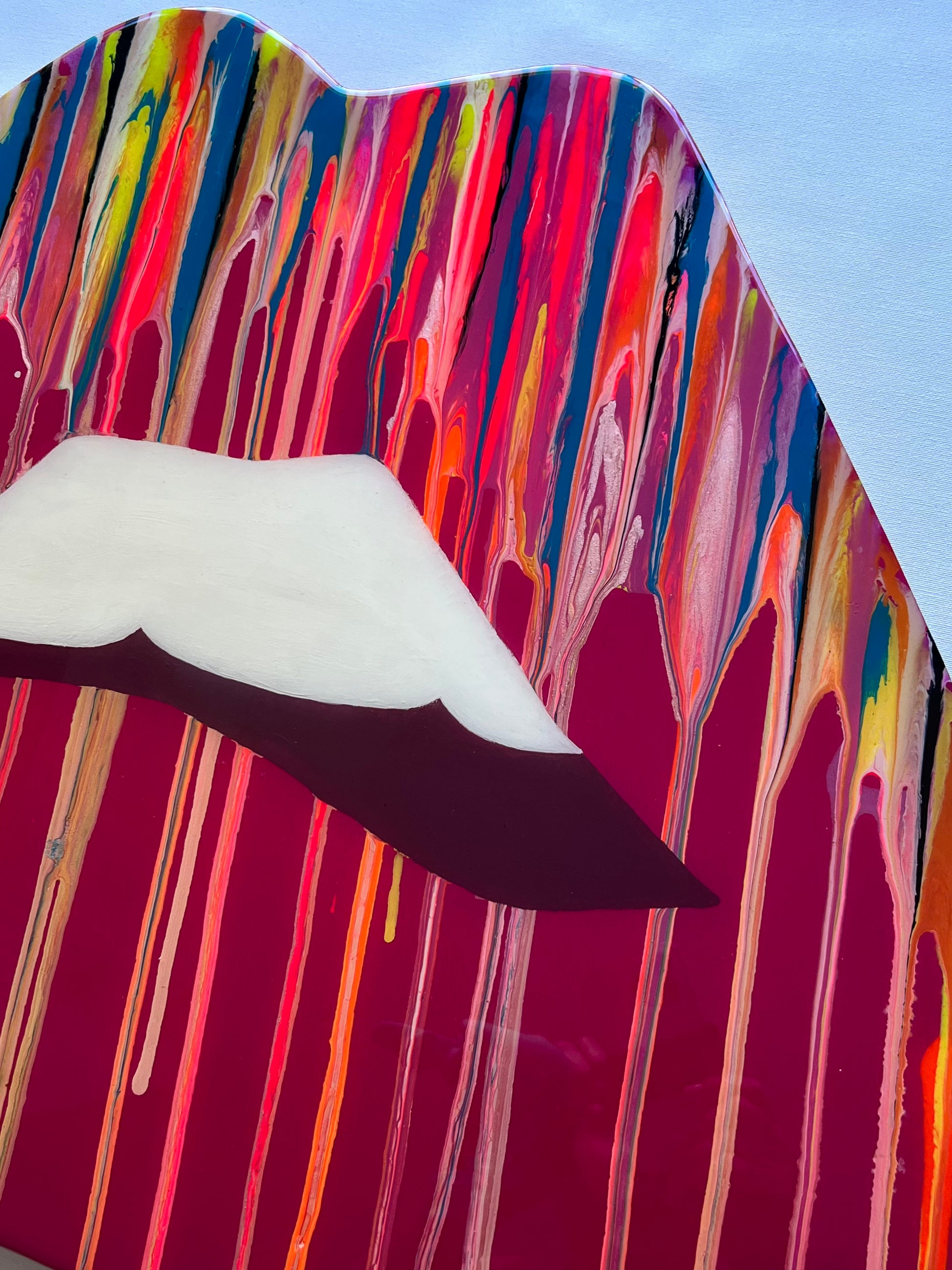 Acrylic paint on wood coated with epoxy resin for a glossy finish